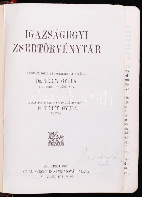 Dr. Térfy Gyula: Igazságügyi zsebkönyvtár. Bp. 1930. Grill Károly Köny... https://www.darabanth.com/de/187-Fernauktion/187.0/Andere-Sammelgebiete/Bucher-Geschichte~6000035/Dr-Terfy-Gyula-Igazsagugyi-zsebkonyvtar-Bp-1930-Grill-Karoly-Konyvkiado-Vallalat~II692450