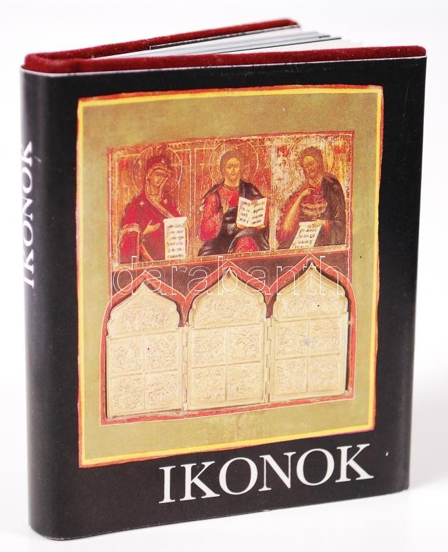 Ikonok. (minikönyv) Magyarországi magángyűjtemények és múzeumok anyagából válogatta és a bevezető szöveget írta Ruzsa György.A színes reprodukciókat Mudrák Attila készítette. H.n., é.n., k.n.. Aranyozott bársonykötésben, borítóval.