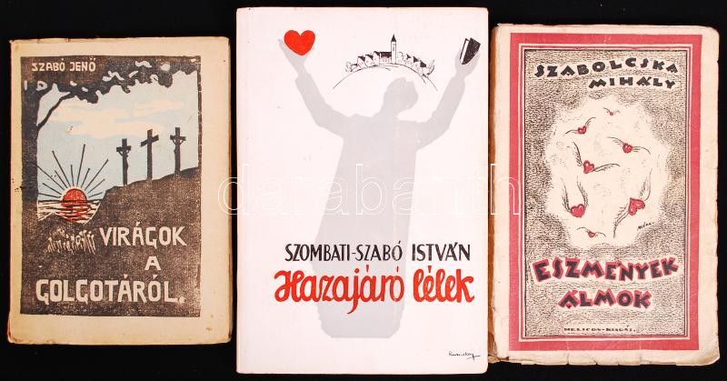 Beschreibung: 3 db verses kötet: Szabó Jenő: Virágok a Golgotáról. Szabolcska Mihály: Eszmények, álmok. Szombati-Szabó István: Hazajáró lélek.