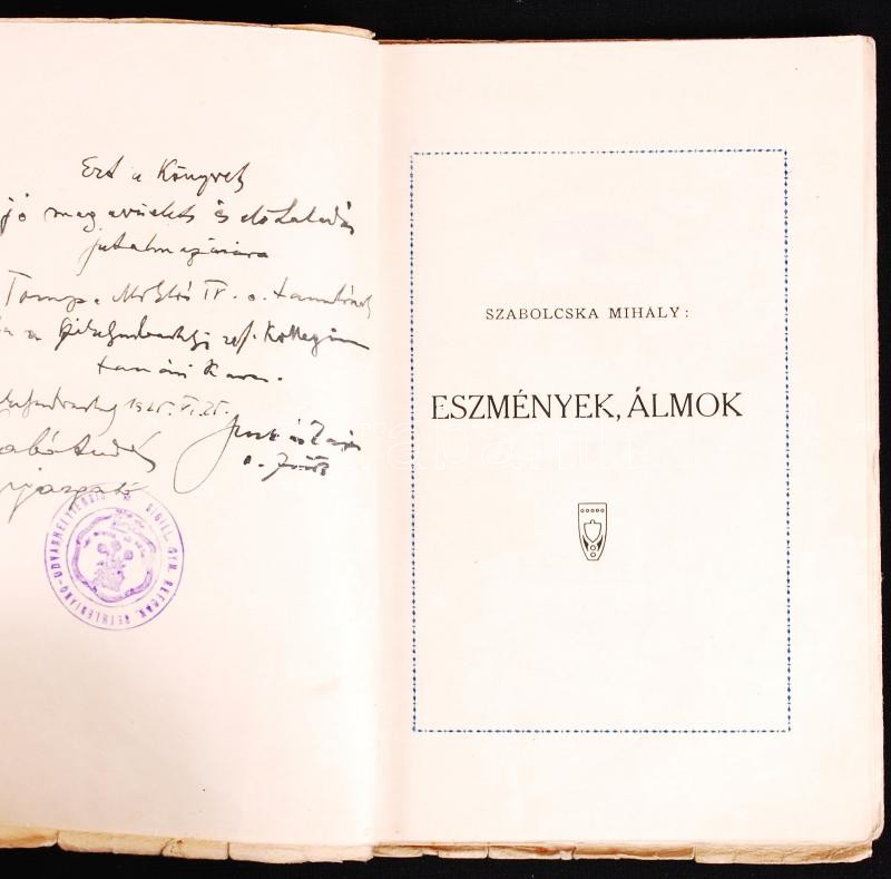 3 db verses kötet: Szabó Jenő: Virágok a Golgotáról. Szabolcska Mihály... https://www.darabanth.com/de/187-Fernauktion/187.0/Andere-Sammelgebiete/Bucher-Sonstige-Raritaten~6000040/3-db-verses-kotet-Szabo-Jeno-Viragok-a-Golgotarol-Szabolcska-Mihaly-Eszmenyek-almok-S~II693050
