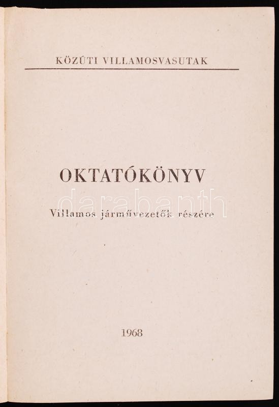 Oktatókönyv villamos járművezetők részére. 1968. Félvászon kötésben. https://www.darabanth.com/de/187-Fernauktion/187.0/Andere-Sammelgebiete/Bucher-Wissenschaft-und-Technik~6000029/Oktatokonyv-villamos-jarmuvezetok-reszere-1968-Felvaszon-kotesben~II690673