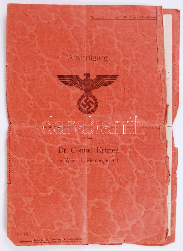 1943 Származási bizonyítvány, német, magyar nyelven https://www.darabanth.com/de/187-Fernauktion/187.0/Andere-Sammelgebiete/Dokument~6000015/1943-Szarmazasi-bizonyitvany--nemet-magyar-nyelven~II689063