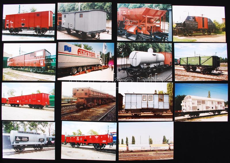 Beschreibung: 15db színes fotó tehervagonokról 2000-2003. 13x9 cm.