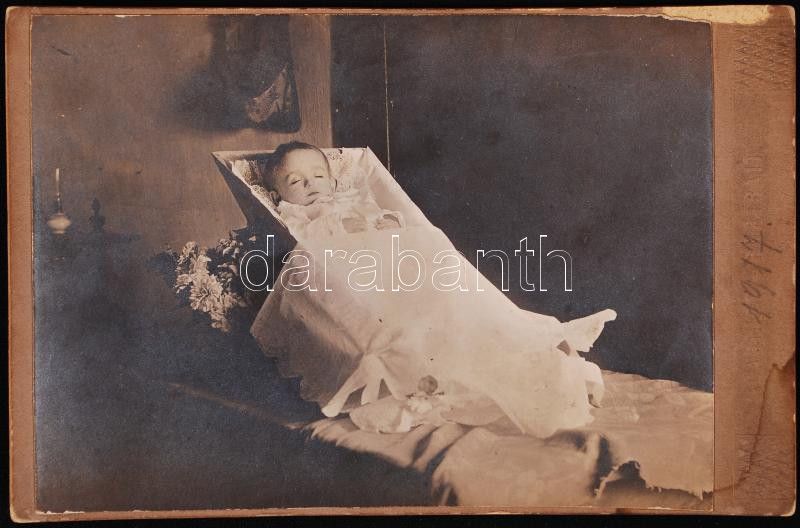 1917 Halott gyermeket ábrázoló keményhátú fotó, 11x17cm https://www.darabanth.com/de/187-Fernauktion/187.0/Andere-Sammelgebiete/Foto~6000018/1917-Halott-gyermeket-abrazolo-kemenyhatu-foto-11x17cm~II690661