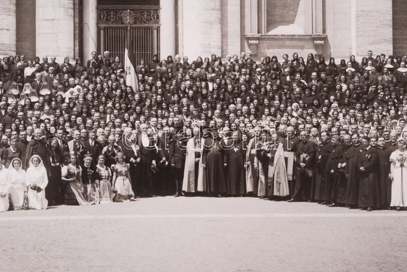Beschreibung: 1920-1930 Római zarándoklaton részt vett magyarok csoportképe (kutatásra érdemes), 29x48,5cm