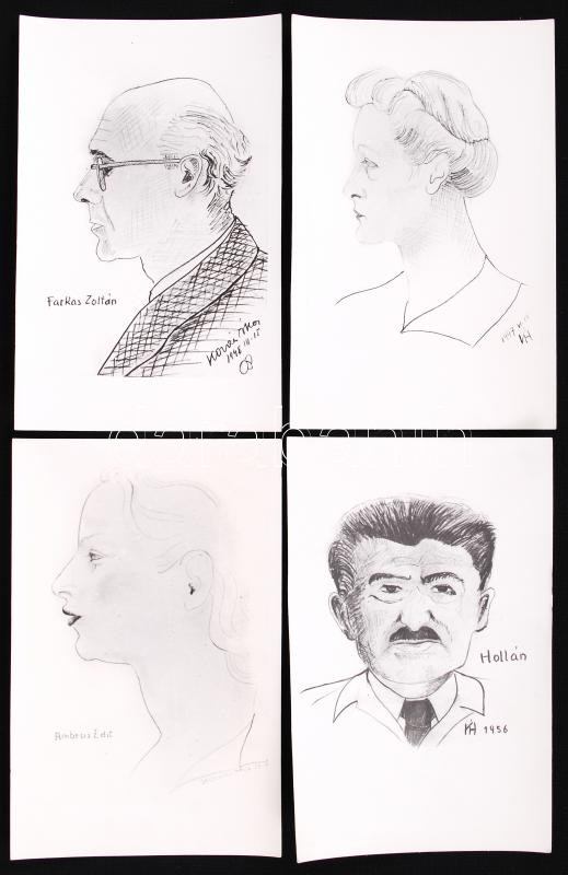 Beschreibung: 4db Karikatúra fotó, Kovács Ákos jelzéssel. 14x9cm