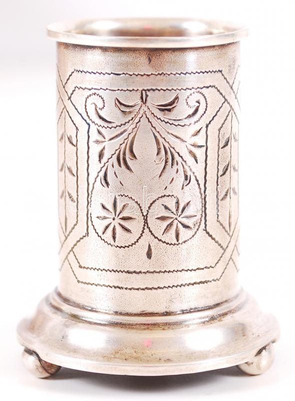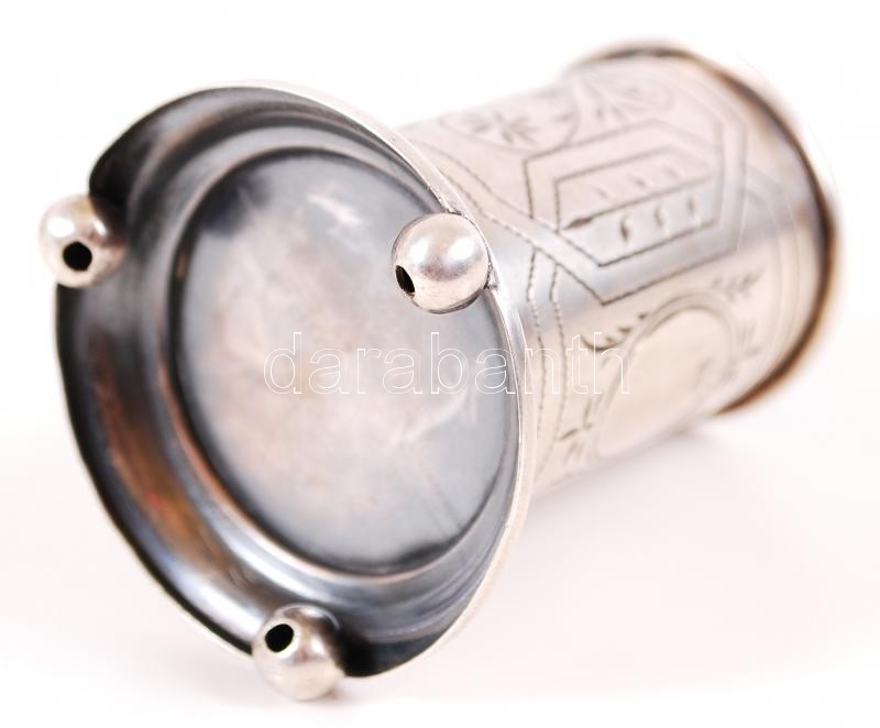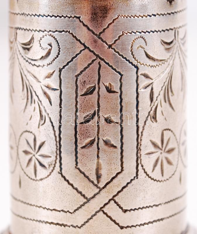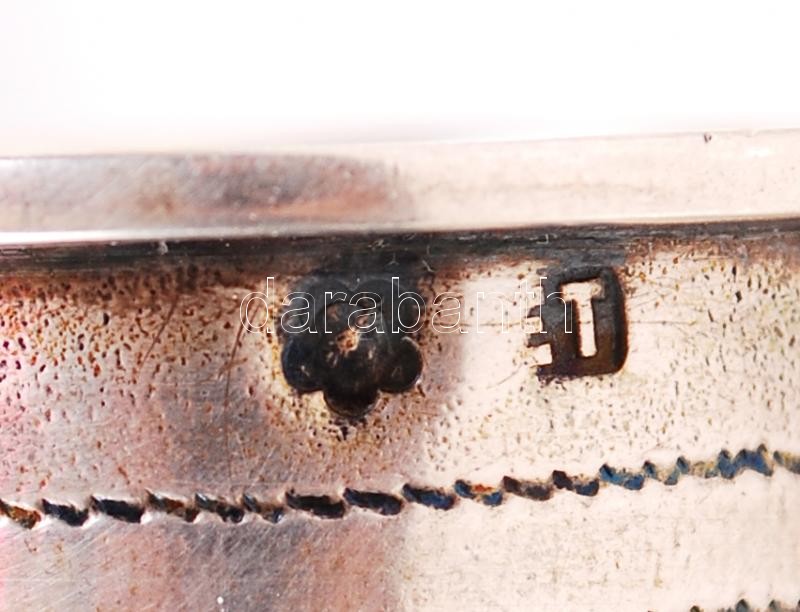 1872-1922 Ezüst (Ag) tégely, 800/1000 tisztaságú, bécsi "dianás" jelzéssel, cizellált díszítéssel, vésett, bárói koronával /
