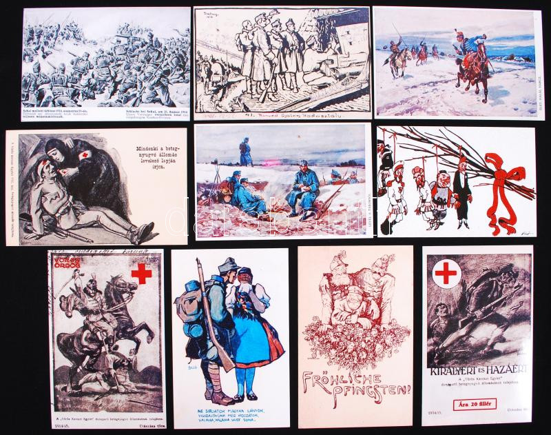 Beschreibung: 10db fotómásolat, első Világháborús képeslapokról ~12 x 10 cm.