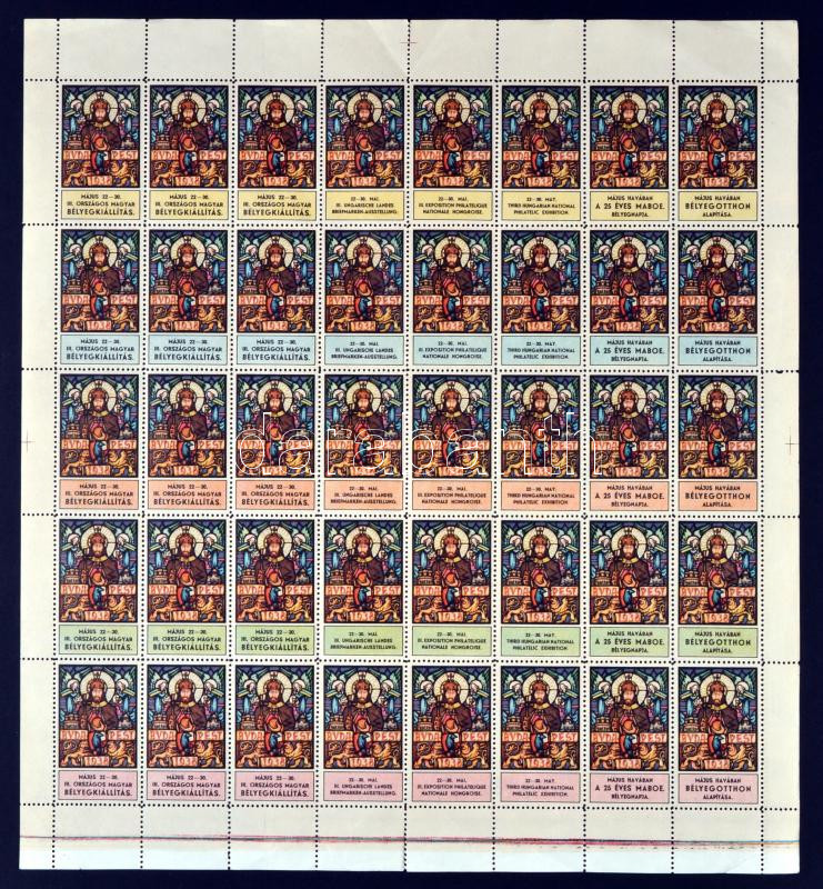 1938 III. Országos Magyar Bélyegkiállítás levélzáró 40-es ív https://www.darabanth.com/de/187-Fernauktion/187.0/Andere-Sammelgebiete/Paraphilatelie~6000013/1938-III-Orszagos-Magyar-Belyegkiallitas-levelzaro-40-es-iv~II690380