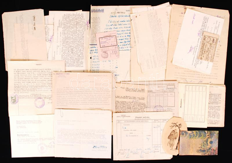 Beschreibung: Endrő Margit (1899-1986) keramikus hagyatékából, hivatalos papírok, akvarell és tusrajz, aláírások