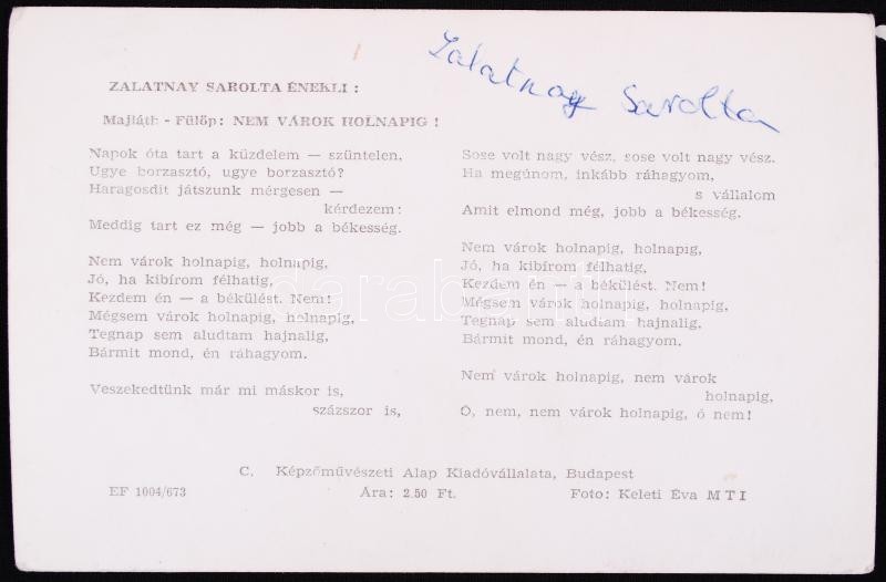 Beschreibung: Zalatnay Sarolta aláírt fotója, 15,5x10cm