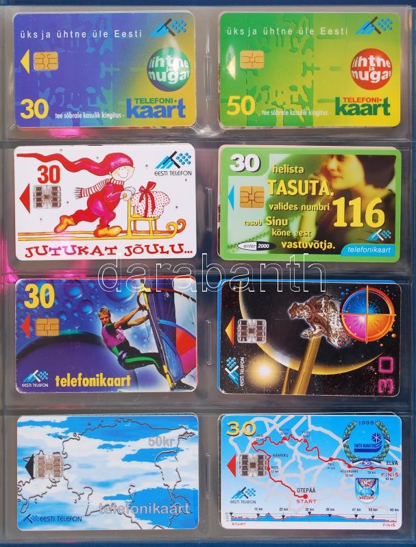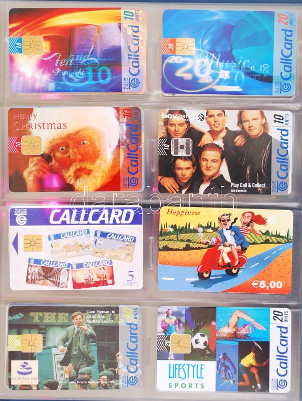 141 darabos nagyon szép ír és észt telefonkártya-gyűjtemény. Mind különféle! Igényes gyűrűs Lindner telefonkártya-berakóban / All different 141 Irish, Estonian phonecards in quality Lindner album