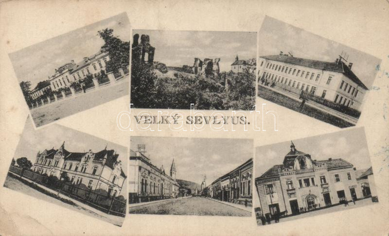 Beschreibung: Nagyszőlős public school, county hall, children home, pharmacy (fa)