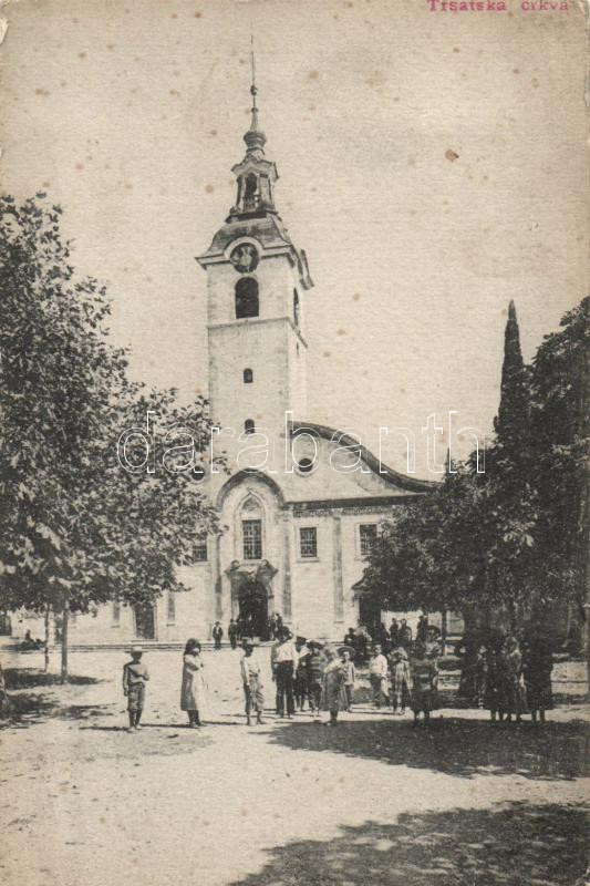 Fiume Trsat, church (small tear) https://www.darabanth.com/de/187-Fernauktion/187.0/Ansichtskarten/Kroatien~3000008/Fiume-Trsat-church-small-tear~II688508