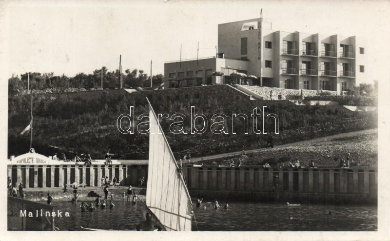 Malinska beach, Hotel Halin (EK) https://www.darabanth.com/de/187-Fernauktion/187.0/Ansichtskarten/Kroatien~3000008/Malinska-beach-Hotel-Halin-EK~II688785