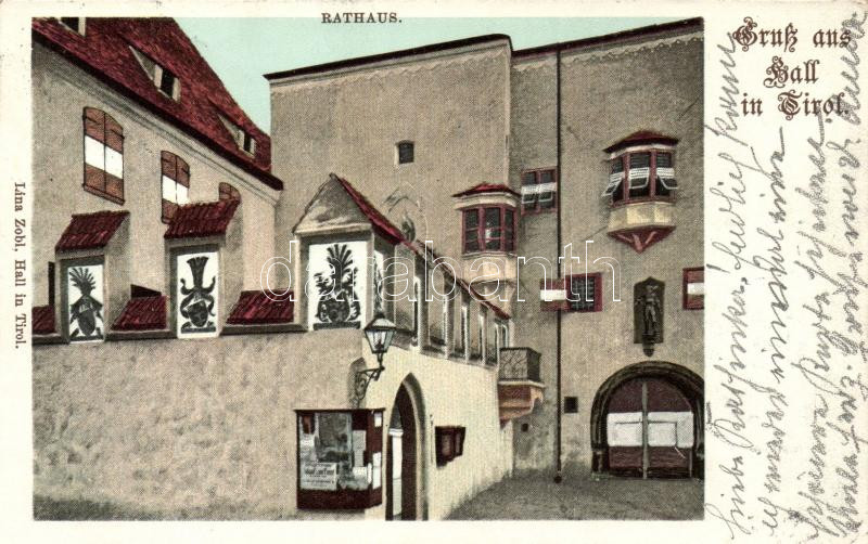 https://www.darabanth.com/de/187-Fernauktion/187.0/Ansichtskarten/Osterreich~1000057/Hall-in-Tirol-Town-Hall~II689458