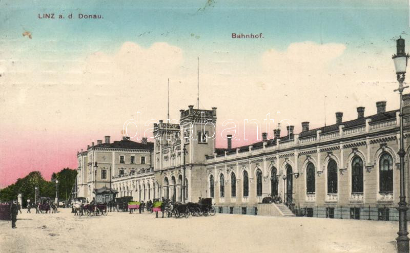 Linz an der Donau railway station https://www.darabanth.com/de/187-Fernauktion/187.0/Ansichtskarten/Osterreich~1000057/Linz-an-der-Donau-railway-station~II694337