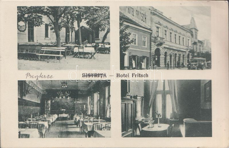 Beszterce Hotel Fritsch, 'Beszterce vissza' So. Stpl (fa) https://www.darabanth.com/de/187-Fernauktion/187.0/Ansichtskarten/Siebenburgen~3000005/Beszterce-Hotel-Fritsch-Beszterce-vissza-So-Stpl-fa~II686544
