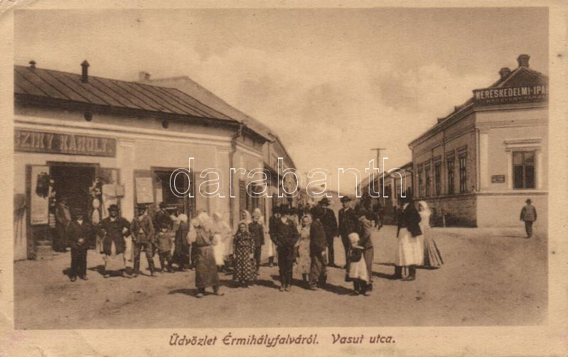Érmihályfalva, Vasút street, shop of Károly Sziky, Trade and Industry ... https://www.darabanth.com/de/187-Fernauktion/187.0/Ansichtskarten/Siebenburgen~3000005/Ermihalyfalva-Vasut-street-shop-of-Karoly-Sziky-Trade-and-Industry-Company-EB~II689988