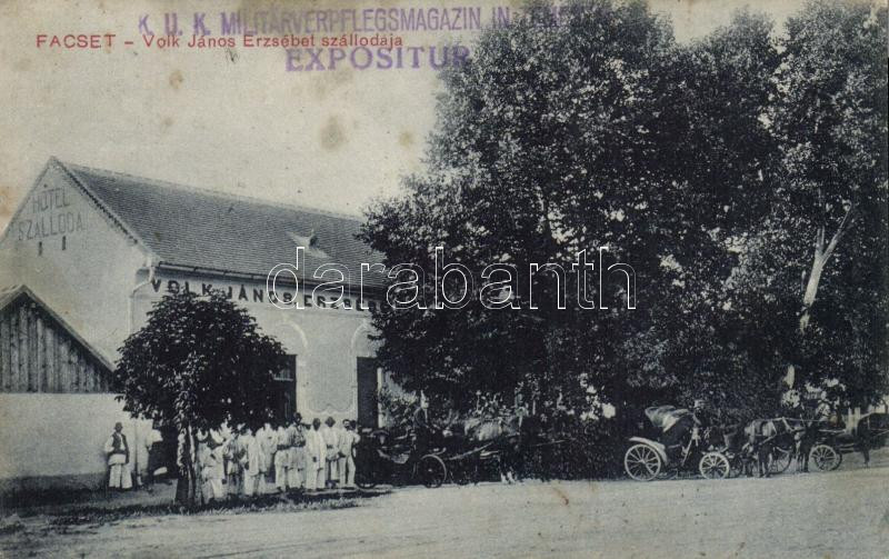 Facset, Facsád; Hotel of János Volk (fl) https://www.darabanth.com/de/187-Fernauktion/187.0/Ansichtskarten/Siebenburgen~3000005/Facset-Facsad-Hotel-of-Janos-Volk-fl~II691472