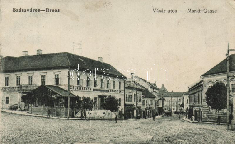 Szászváros Market street, confectionery (EB) https://www.darabanth.com/de/187-Fernauktion/187.0/Ansichtskarten/Siebenburgen~3000005/Szaszvaros-Market-street-confectionery-EB~II692777