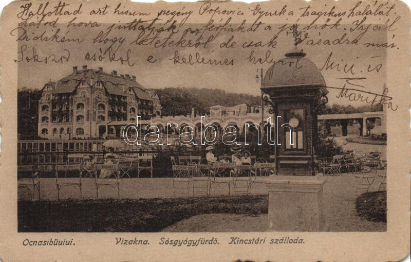Vízakna-Sósgyógyfürdő, Kincstári Hotel (EK) https://www.darabanth.com/de/187-Fernauktion/187.0/Ansichtskarten/Siebenburgen~3000005/Vizakna-Sosgyogyfurdo-Kincstari-Hotel-EK~II689389