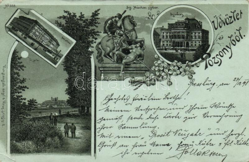 1898 Pozsony promenade, theatre, St. Martin statue, floral, litho (EK) https://www.darabanth.com/de/187-Fernauktion/187.0/Ansichtskarten/Slowakei~3000006/1898-Pozsony-promenade-theatre-St-Martin-statue-floral-litho-EK~II691417