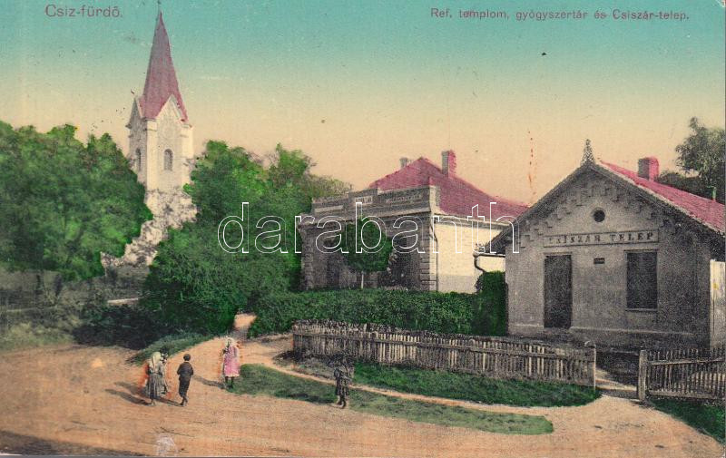 Beschreibung: Csízfürdő Csiszár telep, church, pharmacy