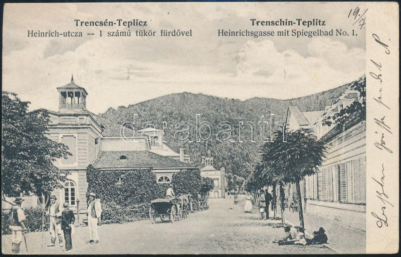 Trencsénteplic, Heinrich street, mirror spa (EK) https://www.darabanth.com/de/187-Fernauktion/187.0/Ansichtskarten/Slowakei~3000006/Trencsenteplic-Heinrich-street-mirror-spa-EK~II685851