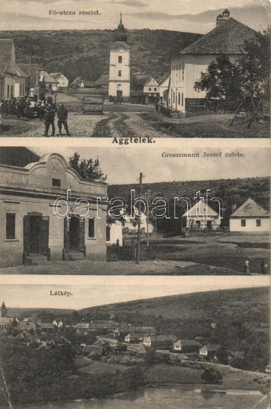 Aggtelek, Fő utca, Grosszmann József üzlete, templom (EK) https://www.darabanth.com/de/187-Fernauktion/187.0/Ansichtskarten/Ungarn~3000004/Aggtelek-Fo-utca-Grosszmann-Jozsef-uzlete-templom-EK~II693238