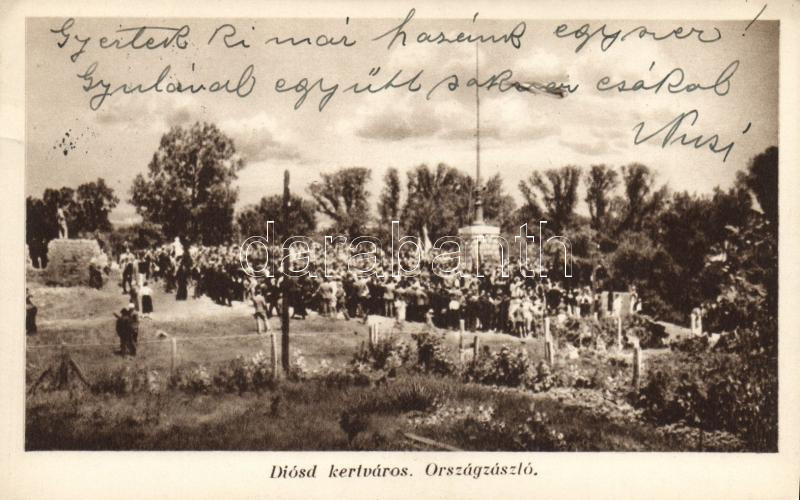 Diósd kertváros, országzászló https://www.darabanth.com/de/187-Fernauktion/187.0/Ansichtskarten/Ungarn~3000004/Diosd-kertvaros-orszagzaszlo~II689268