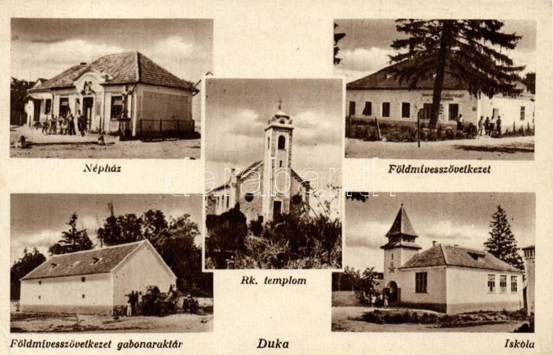 Duka Népház, Róm. kat. templom, Földmíves szövetkezet, gabonaraktár, i... https://www.darabanth.com/de/187-Fernauktion/187.0/Ansichtskarten/Ungarn~3000004/Duka-Nephaz-Rom-kat-templom-Foldmives-szovetkezet-gabonaraktar-iskola-EK~II690836