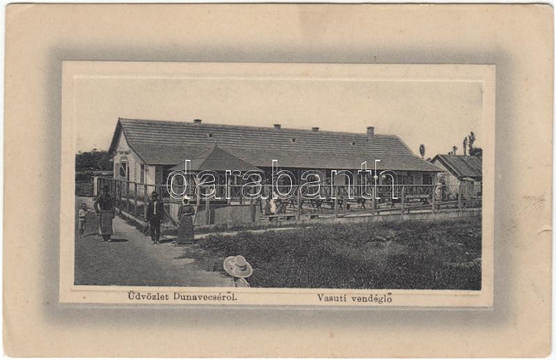 Dunavecse vasúti vendéglő (kis szakadás / small tear) https://www.darabanth.com/de/187-Fernauktion/187.0/Ansichtskarten/Ungarn~3000004/Dunavecse-vasuti-vendeglo-kis-szakadas-small-tear~II693139
