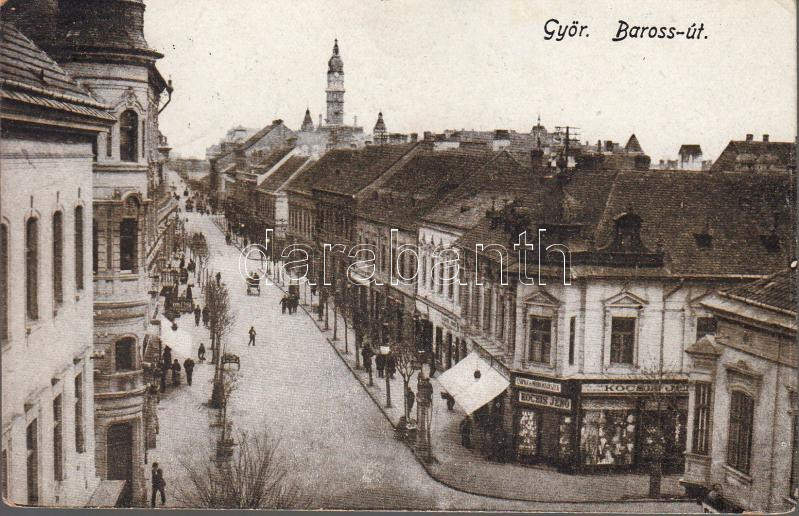 Győr Baross út, Kocsis Jenő kereskedése https://www.darabanth.com/de/187-Fernauktion/187.0/Ansichtskarten/Ungarn~3000004/Gyor-Baross-ut-Kocsis-Jeno-kereskedese~II693864