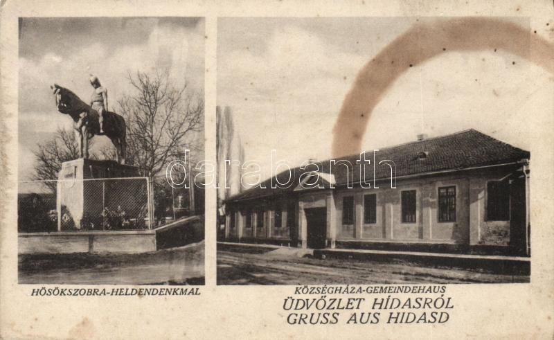 Hidas, Hősök szobra, Községháza (fl) https://www.darabanth.com/de/187-Fernauktion/187.0/Ansichtskarten/Ungarn~3000004/Hidas-Hosok-szobra-Kozseghaza-fl~II688330