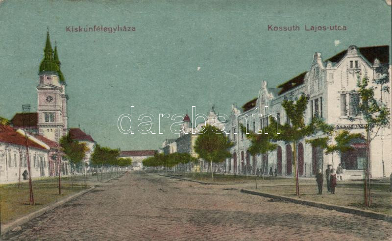 Kiskunfélegyháza, Kossuth Lajos utca, templom, Tóth György üzlete (fa) https://www.darabanth.com/de/187-Fernauktion/187.0/Ansichtskarten/Ungarn~3000004/Kiskunfelegyhaza-Kossuth-Lajos-utca-templom-Toth-Gyorgy-uzlete-fa~II693206