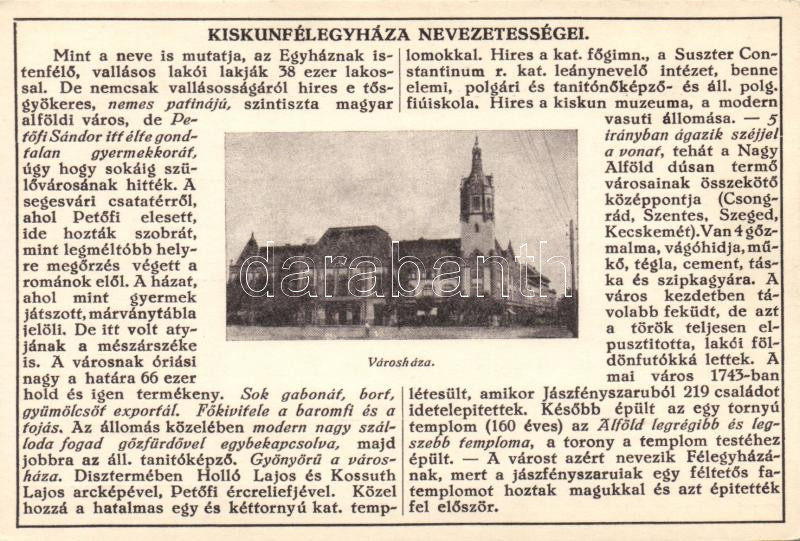 Kiskunfélegyháza nevezetességei, Városháza https://www.darabanth.com/de/187-Fernauktion/187.0/Ansichtskarten/Ungarn~3000004/Kiskunfelegyhaza-nevezetessegei-Varoshaza~II692466