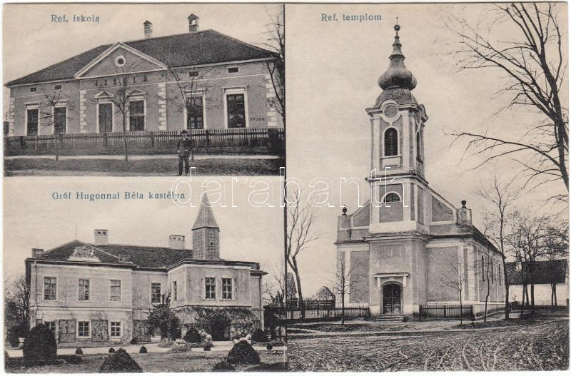 Kömlőd Ref. iskola és templom, Gróf Hugonnai Béla kastélya (fl) https://www.darabanth.com/de/187-Fernauktion/187.0/Ansichtskarten/Ungarn~3000004/Komlod-Ref-iskola-es-templom-Grof-Hugonnai-Bela-kastelya-fl~II693747