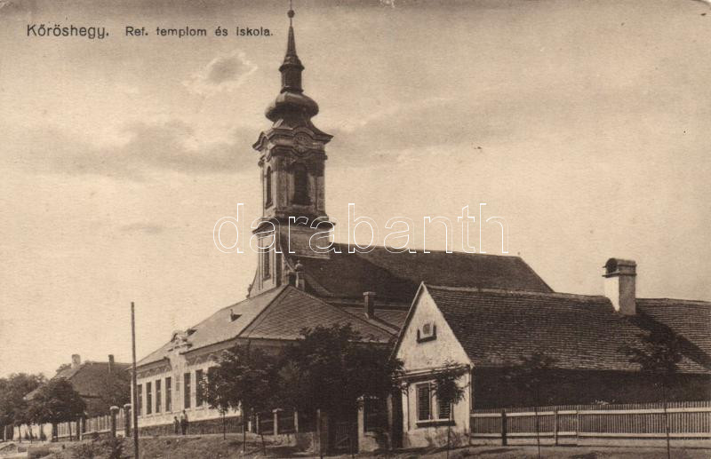 Kőröshegy református templom és iskola (kis szakadás / small tear) https://www.darabanth.com/de/187-Fernauktion/187.0/Ansichtskarten/Ungarn~3000004/Koroshegy-reformatus-templom-es-iskola-kis-szakadas-small-tear~II691877