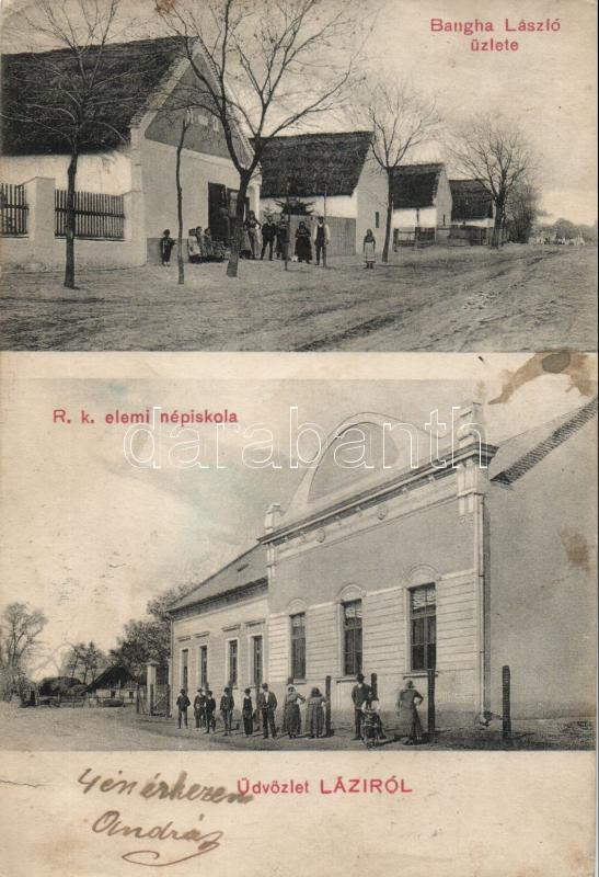Lázi Baugha László üzlete, elemi népiskola (small tear) https://www.darabanth.com/de/187-Fernauktion/187.0/Ansichtskarten/Ungarn~3000004/Lazi-Baugha-Laszlo-uzlete-elemi-nepiskola-small-tear~II690143