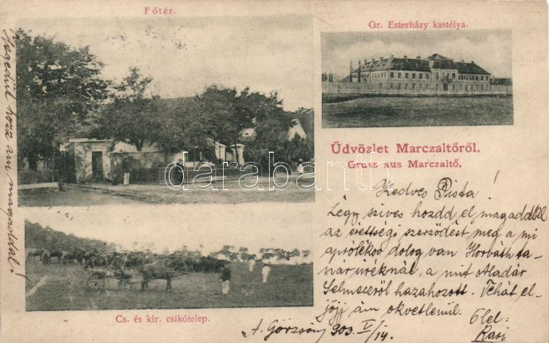 Marcaltő Főtér, Gr. Eszterházy kastély, Csikótelep https://www.darabanth.com/de/187-Fernauktion/187.0/Ansichtskarten/Ungarn~3000004/Marcalto-Foter-Gr-Eszterhazy-kastely-Csikotelep~II693666
