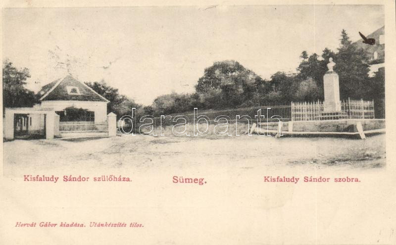 Sümeg, Kisfaludy Sándor szülőháza és szobra https://www.darabanth.com/de/187-Fernauktion/187.0/Ansichtskarten/Ungarn~3000004/Sumeg-Kisfaludy-Sandor-szulohaza-es-szobra~II688340