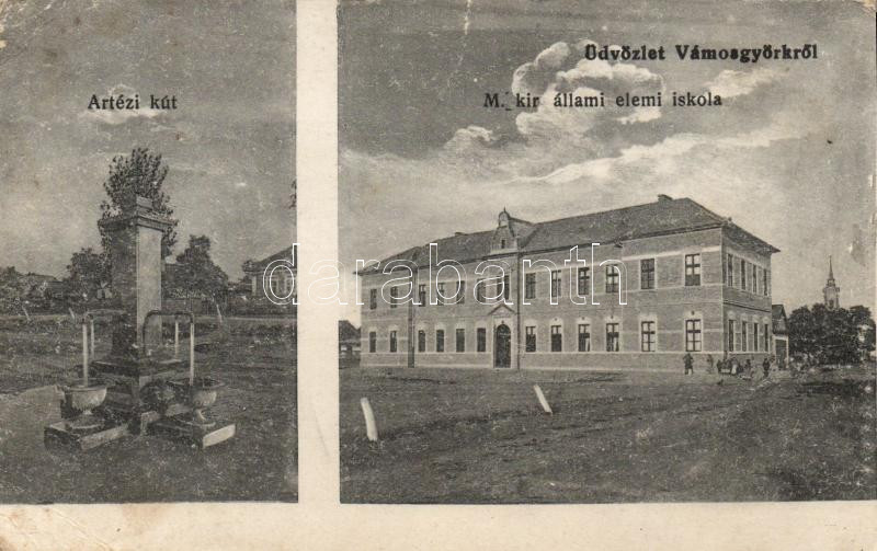 Vámösgyörk Artézi kút, állami elemi iskola (EK) https://www.darabanth.com/de/187-Fernauktion/187.0/Ansichtskarten/Ungarn~3000004/Vamosgyork-Artezi-kut-allami-elemi-iskola-EK~II693229