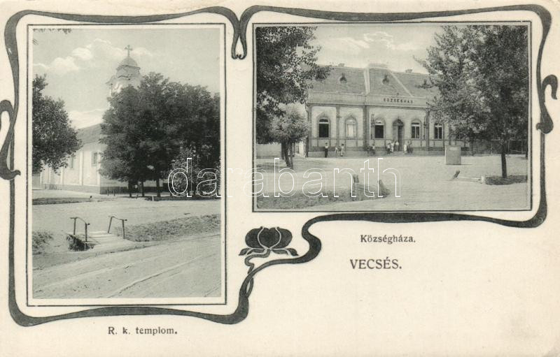 Vecsés, Róm. kat. templom, községháza (fa) https://www.darabanth.com/de/187-Fernauktion/187.0/Ansichtskarten/Ungarn~3000004/Vecses-Rom-kat-templom-kozseghaza-fa~II689242