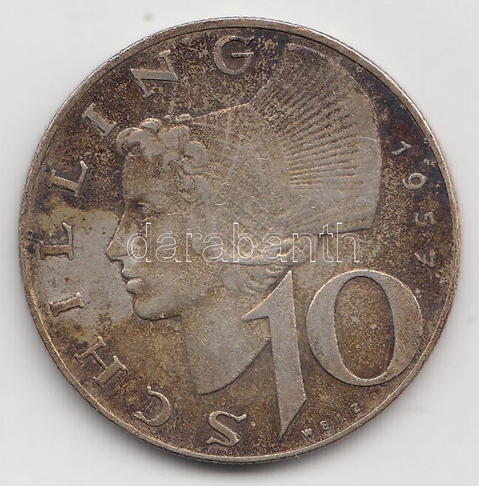 Austria 1957. 10 Schilling Ag C:VF https://www.darabanth.com/de/187-Fernauktion/187.0/Numismatik/Auslandische-Munzen~12/Ausztria-1957-10Sch-Ag-T2--3Cbr3EAustria-1957-10-Schilling-Ag-CVF~II692192