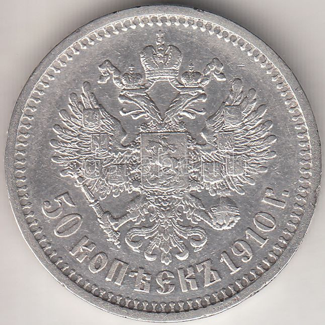 Russia 1910. 50 kopeks A... https://www.darabanth.com/de/187-Fernauktion/187.0/Numismatik/Auslandische-Munzen~12/Oroszorszag-1910-50k-Ag-II-Miklos-T2-ph-3Cbr3ERussia-1910-50-kopeks-Ag-Nicholas-II-Ag-CXF~II688771