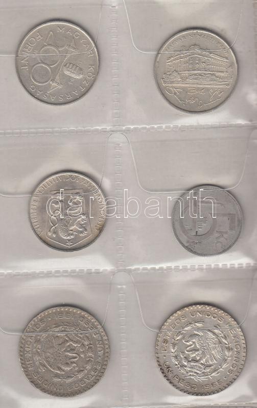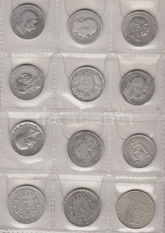 Beschreibung: Izgalmas 48db-ból álló ezüst érem gyűjtemény különféle pénzekkel berakóba rendezve! (Br.: 380g) T:vegyes