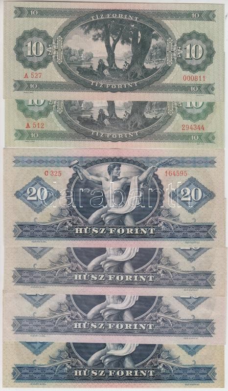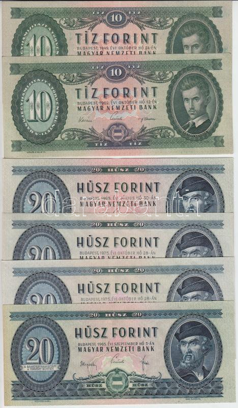 1949. 10Ft + 1962. 10Ft + 1965. 20Ft + 1969. 20Ft + 1975. 20Ft (2x) T:... https://www.darabanth.com/de/187-Fernauktion/187.0/Numismatik/Ungarische-Banknoten~7/1949-10Ft-plus-1962-10Ft-plus-1965-20Ft-plus-1969-20Ft-plus-1975-20Ft-2x-TII~II688373