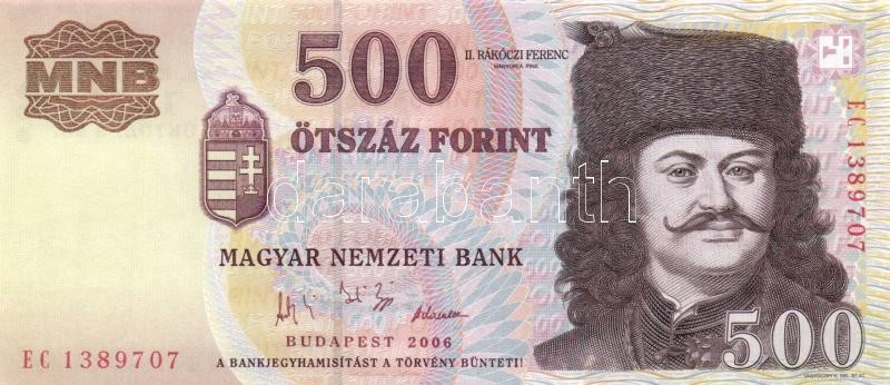 2006. 500Ft "EC" (2x) egymás utáni sorszámmal T:II https://www.darabanth.com/de/187-Fernauktion/187.0/Numismatik/Ungarische-Banknoten~7/2006-500Ft-EC-2x-egymas-utani-sorszammal-TII~II690878