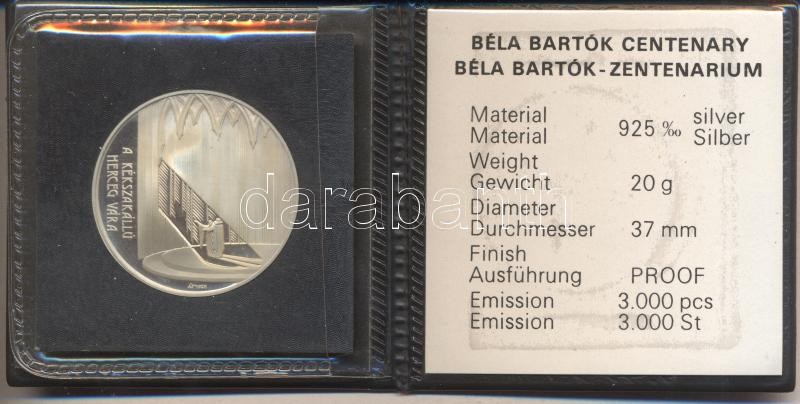 Fülöp Zoltán (1951-) 1981. "Bartók Béla / A Kékszakállú Herceg vára" Ag (0.925) emlékérem (37mm/20g) ÁPV plasztiktokban, tanúsítvánnyal T:PP Csak 3000db!